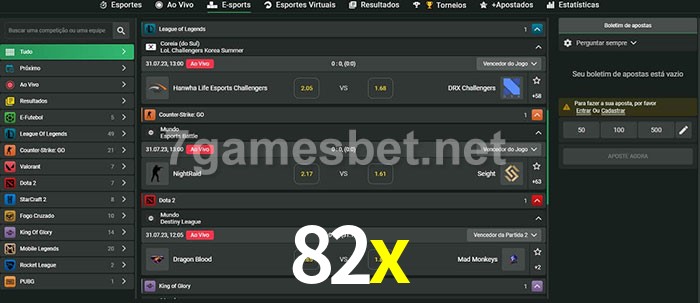 A aposta 82x oferece aos jogadores a experiência mais conveniente de apostas em eSports!